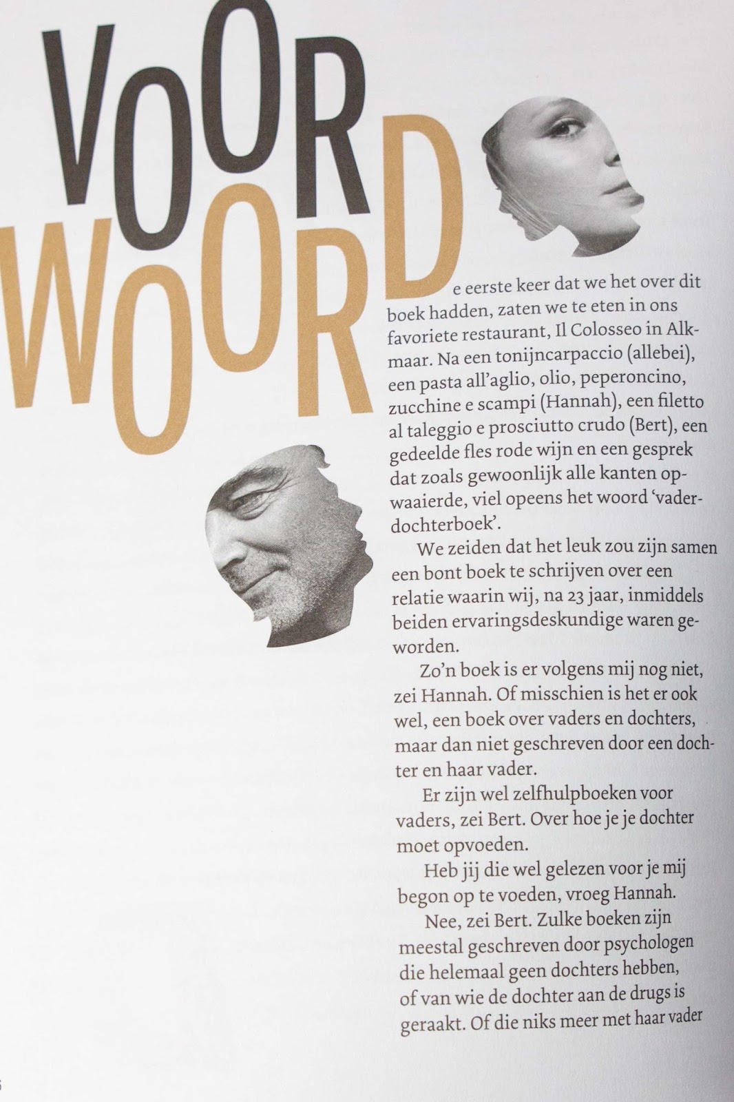 Hannah en Bert Wagendorp geven een kijkje in hun eigen vader/dochter relatie en over wat het voor hen betekende om samen dit boek te maken. Dat ze als het ware een stukje van zichzelf in het boek gestopt hebben maakt het bijzonder om te lezen. Het is een warm en positief boek waarin ze niet onder stoelen of banken steken dat ze blij zijn met elkaar.