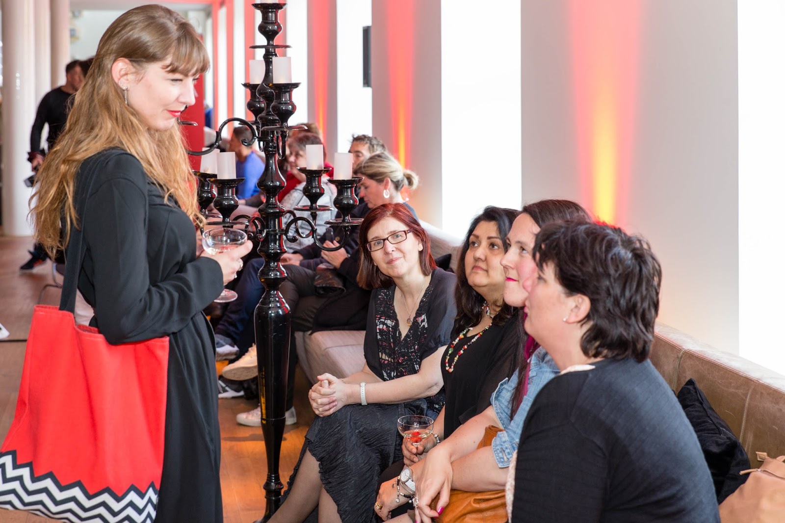 De ontvangst was groots aangepakt met een mooie entourage en bladen vol met bruisende prosecco. De bediening van deze avond liep allemaal rond in knalrode shirts met MAESTRA erop geprint. Er stonden grote schalen fruit en op de tafels een menu lijst van de sexy hapjes die geserveerd zonden worden. Het zag er uitnodigend en feestelijk uit.
