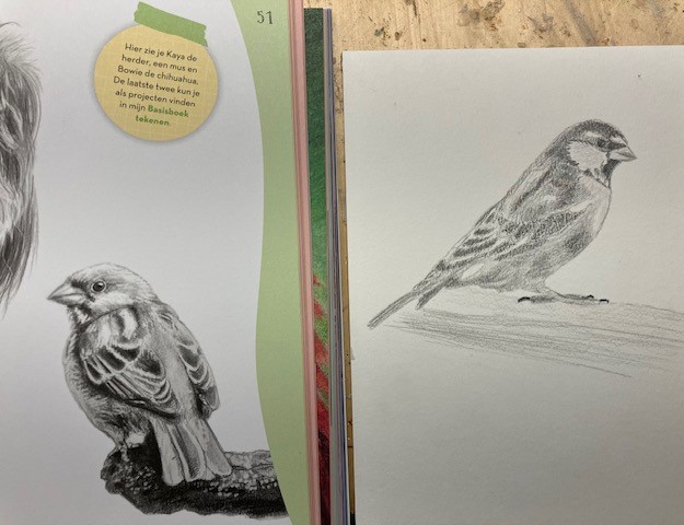 Zelf hebben we al vaak workshops in het atelier (en onder leiding van) Julia gevolgd en diverse onderwerpen die in het boek staan ook al in de praktijk geoefend. Voor deze bespreking voeg ik daarom een aantal afbeeldingen toe van dieren die Connie en ik getekend of geschilderd hebben toe, voorbeelden die je vrijwel allemaal ook in het boek zult terugvinden