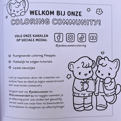 In het boek vind je naast de kleurplaten ook challenges / wat tips / een checklist zodat je aankunt geven welke kleurplaten je gedaan hebt en een pagina waarop je je potloden en stiften kunt uitproberen.